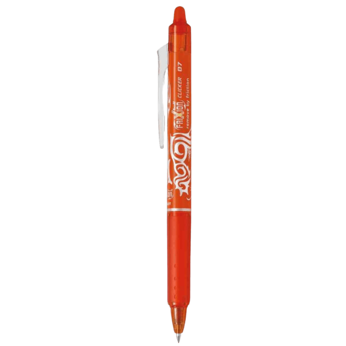 Raderbara kulpennan Pilot Frixion Clicker med klickmekanism. Kulspetspennan har ett mjukt gummigrepp och den skrivna texten kan raderas så många gånger man vill.Den inbyggda tryckmekaniken är perfekt för dig som vill slippa hålla reda på ett pennlock och samtidigt har möjligheten att stoppa pennan i fickan eller fästa på blocket. Se till att ha flera olika färger hemma.Finns i flera färgerMedium kula 0,7 mmRaderbarGelbläck
