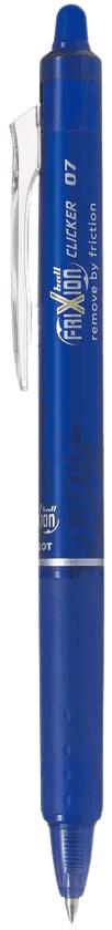 Raderbara kulpennan Pilot Frixion Clicker med klickmekanism. Kulspetspennan har ett mjukt gummigrepp och den skrivna texten kan raderas så många gånger man vill.Den inbyggda tryckmekaniken är perfekt för dig som vill slippa hålla reda på ett pennlock och samtidigt har möjligheten att stoppa pennan i fickan eller fästa på blocket. Se till att ha flera olika färger hemma.Finns i flera färgerMedium kula 0,7 mmRaderbar