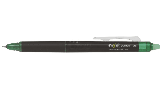 Skriv följsamt och med hög precision med Pilots nya FriXion Point Clicker! En stilren penna med fin spets vars innovativa teknik och bläck garanterar en skön skrivkänsla. Den stora bläckkapaciteten inuti spetsen ger ett jämnt och stabilt bläckflöde från start. Med den fina spetsen på 0,5 mm kan du skriva med otroligt hög precision. Detta tillsammans med Pilots värmekänsliga FriXion-bläck ger en oslagbar skrivupplevelse.Friktion från suddet gör att bläcket försvinner och du kan direkt skriva på nytt med samma penna. Spara pengar och gör miljön en tjänst genom att byta refill i din FriXion Point Clicker istället för att köpa en helt ny penna när bläcket tar slut. Aldrig har det varit så enkelt att tänka grönt!Kulspetspennan Frixion Point Clicker med raderbart och värmekänsligt bläck och extra fin spets. Gelbläcket i pennan är mjuk och pennspetsen är gjord för tunna och fina precisionsarbete. Med en enkelhet kan du enkelt ta bort dina felskrivningar eller ritningar gång på gång utan att pappret blir kladdigt eller skrynkligt. Pennspetsen är gjord för precisionsarbete. Påfyllningsbar med nya patroner som du byter ut enkelt.Finns i flera färgerSpetsbredd: 0,5 mmRaderbart bläckErgonomiskUtbytbara patroner