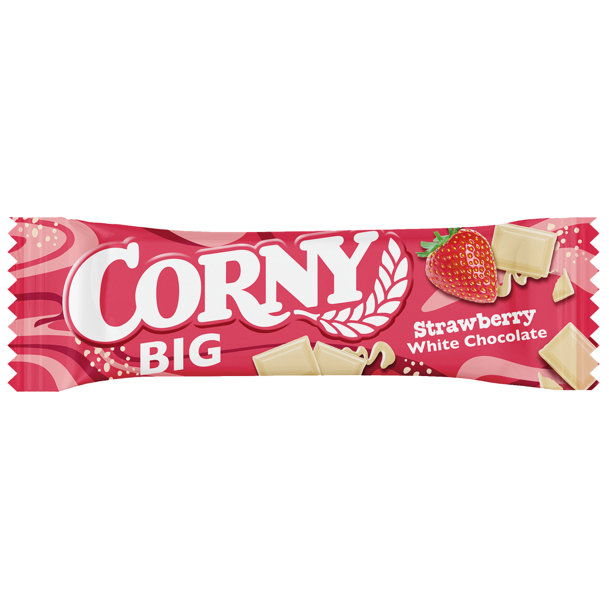 Finns det något bättre sätt att stilla hungern än att smaska på en krispig Corny Big med smak av jordgubbe och lyxig vit choklad?